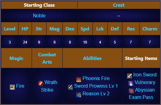 | First Seen | Chapter 5: Betrayal (Cindered Shadows), Chapter 2: Familiar Scenery (White Clouds), Paralogue: The Ashen Wolves Reunion (Three Hopes) |