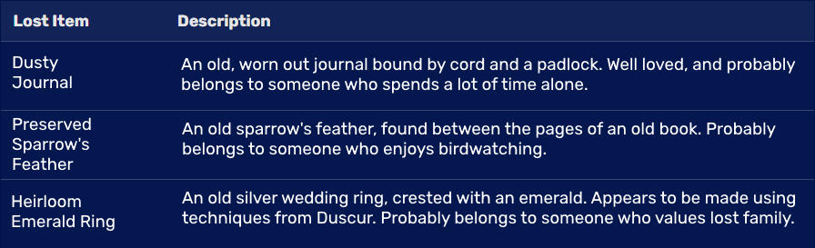 Lost Items