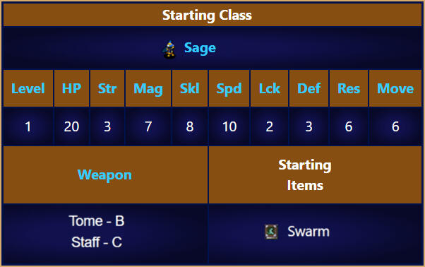 | Starting Class | Druid (Cindered Shadows), Noble (White Clouds) |
