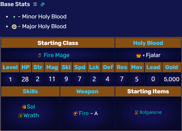 | Fódlan Birthday | 23rd of the Wyvern Moon, Imperial Year 1160 |